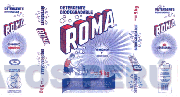 La denominación ROMA escrita en letras características y el diseño de una mujer sentada lavando ropa a mano y una figura circular destellante, todo dentro de una etiqueta rectangular con frases alusivas al producto, en los colores rojo, azul, celeste y blanco; conforme al modelo adjunto