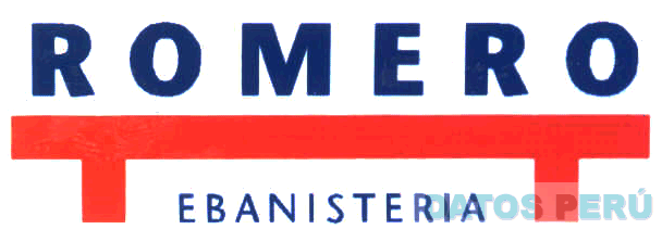 LA DENOMINACION ROMERO ESCRITA EN LETRAS CARACTERISTICAS Y DEBAJO UNA FIGURA GEOMETRICA CON LA PALABRA EBANISTERIA, EN LOS COLORES AZUL (PANTONE 280 C) Y ROJO (PANTONE 1797C); CONFORME AL MODELO ADJUNTO