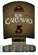 La denominación DESDE 1929 RON CARTAVIO AÑEJO 5 AÑOS AÑEJADO EN BARRICAS DE ROBLE y logotipo (se reivindica colores), conforme al modelo