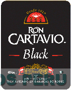 La etiqueta rectangular con esquinas redondeadas de fondo color negro, en cuya parte superior aparece, debajo de la denominación DESDE 1929 escrita en letras características de color dorado, una figura semicircular cuyo interior es de color rojo con bordes negros y dorados, la que contiene la figura estilizada de tres plantas de caña en colores negro y dorado y la figura estilizada de un sol en color blanco; debajo aparece la denominación RON CARTAVIO escrita en letras características de color blanco y la letra R dentro un círculo (sin reivindicar), debajo de la cual aparece la denominación BLACK escrita en letras características de color blanco en medio de dos líneas de color rojo; en la parte inferior aparece la figura de tres círculos conteniendo escudos en colores negro y dorado y a cuyos lados aparecen unas cintas onduladas en los colores rojo y blanco; más abajo se aprecian las denominaciones DU, DESTILERIAS UNIDAS S.A.C. y RON AÑEJADO EN BARRICAS DE ROBLE (sin reivindicar ésta última) escritas en letras características de color blanco; conforme al modelo adjunto