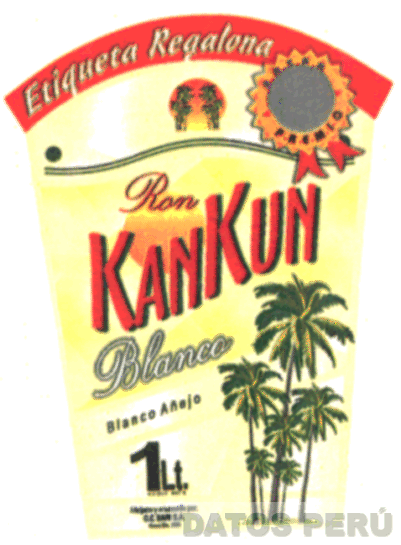 LA ETIQUETA CONFORMADA POR LA DENOMINACION RON KANKUN BLANCO ESCRITA EN LETRAS CARACTERISTICAS; LAS PALABRAS RON KANKUN DE COLOR ROJO Y LA PALABRA BLANCO ESCRITA EN COLOR BLANCO, SOBRE UN FONDO DE COLOR CREMA CON AMARILLO, EN EL QUE SE APRECIA LA FIGURA DE UN SOL AMARILLO Y ANARANJADO, EL DIBUJO DE UNAS PALMERAS DE COLOR VERDE CON LA FRASE BLANCO AÑEJO (SIN REIVINDICAR); EN LA PARTE SUPERIOR SE APRECIA UNA FRANJA ROJA CON LA FRASE ETIQUETA REGALONA (SIN REIVINDICAR) ESCRITA EN COLOR BLANCO, LA FIGURA DE UNA ESCARAPELA DE BORDES AMARILLOS Y FONDO PLOMO CON LA PALABRA RASPA PREMIO (SIN REIVINDICAR) Y EL DIBUJO DE UNAS PALMERAS DE COLOR VERDE SOBRE EL FONDO DE UN SOL AMARILLO Y ANARANJADO; CONFORME AL MODELO ADJUNTO,