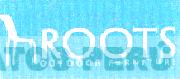 El logotipo conformado por la denominación ROOTS OUTDOOR FURNITURE escrita en letras características y la imagen estilizada de una silla; en color blanco sobre un fondo celeste; conforme al modelo adjunto