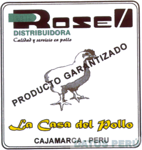 LA DENOMINACION ROSELL EN LETRAS CARACTERISTICAS DE COLOR NEGRO CON UNA LETRA D DE COLOR VERDE ESMERALDA SOBRE LA LETRA R, DEBAJO LA PALABRA DISTRIBUIDORA EN LETRAS CARACTERISTICAS DE COLOR VERDE ESMERALDA; DEBAJO LA FRASE CALIDAD Y SERVICIO EN POLLO EN LETRAS NEGRAS, EN LA PARTE CENTRAL LA FIGURA DE UN POLLO DE COLOR BLANCO, Y EN LA PARTE INFERIOR LA FRASE LA CASA DEL POLLO CON LETRAS CARACTERISTICAS DE COLOR AMARILLO, SEGUN MODELO ADJUNTO,
