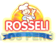 El logotipo conformado por la denominación ROSSELI escrita en letras características, acompañada en la parte inferior por una figura irregular, en la parte superior por la figura estilizada de un hombre con gorro de chef y una figura circular en la parte posterior; todo en los colores rojo, azul, celeste, blanco, amarillo, anaranjado y dorado; conforme al modelo adjunto