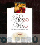 La etiqueta conformada por la denominación ROSSO VIVO en letras de color negro y rojo, en la parte inferior la frase INSPIRADO EN LA PASIÓN en letras de color negro y debajo la palabra PERÚ, en la parte inferior se aprecia la figura de toneles de madera para maceración sobre un fondo de color crema, en la parte superior se observa la imagen de una mujer recostada vestida en colores rojo y anaranjado claro con estilo medieval dentro de un pequeño recuadro, todo dentro de un marco de color negro; conforme al modelo adjunto