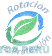 El logotipo conformado por la figura de una hoja en color verde sobre dos flechas de color celeste y verde en direcciones opuestas y alrededor de éstas, la denominación ROTACION ES PROTECCION escrita en letras características en color plomo; conforme al modelo adjunto