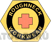 El logotipo conformado por una figura hexagonal de fondo color amarillo conteniendo un aro de color negro en cuyo interior se aprecia la denominación ROUGHNECK WORKWEAR escrita en letras características de color amarillo, conteniendo a su vez un círculo más pequeño de fondo color amarillo en donde se aprecia la figura estilizada de una cruz de color anaranjado; conforme al modelo adjunto
