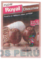 El diseño de empaque conteniendo la representación de porciones de pudín de chocolate, pionono y nueces, en la parte superior la marca ROYAL, tres franjas de distinto tamaño y en la parte inferior el diseño de un personaje sonriente cogiendo una de las copas con una cuchara en la mano derecha, conforme al modelo adjunto