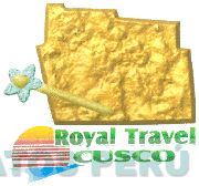 La denominación ROYAL TRAVEL CUSCO escrita en letras características, al lado izquierdo la representación de un sol seccionado y debajo la representación estilizada de un ave; en la parte superior la representación de la piedra de los doce ángulos y superpuesta una vara, todo en los colores dorado, amarillo, rojo, verde esmeralda y turquesa; conforme al modelo adjunto.
