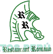 El logotipo conformado por la denominación RESTAURANT ROMANO escrito en letras características de color verde y borde de color negro, sobre ella la figura estilizada de un casco romano de color verde dentro del cual se aprecia la denominación R R escrita en letras características de color negro, conforme al modelo adjunto
