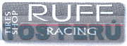 El logotipo conformado por la denominación RUFF escrita en letras características y subrayada por dos líneas, debajo la denominación RACING escrita en letras características y al lado izquierdo la denominación TIRES SHOP escrita en letras características, todo en los colores gris en diversas tonalidades, blanco y rojo; conforme al modelo adjunto.