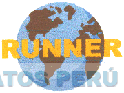 La denominación RUNNER escrita en letras características de color amarillo sobrepuesta al centro de la representación de un globo terráqueo con el mar de color azul claro y la figura de los continentes Americano, Europeo y Africano en color marrón; conforme al modelo adjunto.