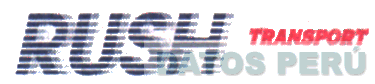 LA DENOMINACION RUSH TRANSPORT, EN LETRAS SEMI INCLINADAS, CON RAYAS BLANCAS DELGADAS, EN AZUL Y ROJO, SEGUN MODELO ADJUNTO,