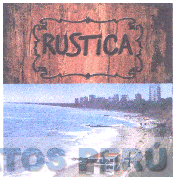 El logotipo conformado por la denominación RUSTICA escrita en letras características dentro de un marco estilizado, todo dentro de un recuadro y debajo la representación de un paisaje, en los colores celeste, blanco, verde, rojo, marrón, negro, anaranjado y gris; conforme al modelo adjunto