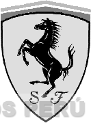 La representación de un escudo conteniendo el diseño estilizado de un caballo rampante, las letras S F características y dos líneas angulares en la parte superior; conforme al modelo adjunto