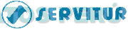 La denominación SERVITUR escrita en letras características, al extremo izquierdo el logotipo de la letra S estilizada dentro de un círculo, todo en color azul; conforme al modelo adjunto