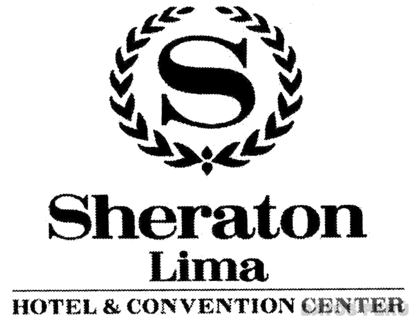 La denominación SHERATON LIMA escrita en letras características, en la parte superior se aprecia la letra S escrita en forma característica encerrada en una figura circular constituida por hojas, y en la parte inferior debajo de una línea recta se aprecia la denominación HOTEL & CONVENTION CENTER escrita en letras características; conforme al modelo adjunto