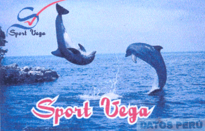 El logotipo conformado por la denominación SPORT VEGA escrita en letras características; en la parte superior izquierda se aprecia la letra S atravesada por un check, dos delfines en actitud de saltar y parte de una isla; en los colores azul oscuro y claro, blanco, rojo, negro; conforme al modelo adjunto