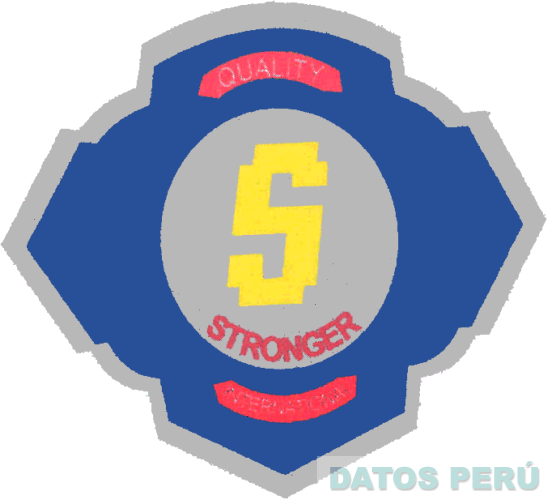 La figura de un escudo de borde plateado, fondo azulino con un círculo central plateado conteniendo la letra S de color amarillo y en la parte inferior la denominación STRONGER escrita en letras características de color rojo, sobre el fondo azulino se aprecia en la parte superior una banda roja con la denominación QUALITY escrita en color plateado y en la parte inferior una banda roja con la denominación INTERNATIONAL de color plateado; conforme al modelo adjunto.