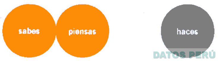 El logotipo conformado por tres circunferencias, dos de color anaranjado (pantone 1585 C) y una de color gris oscuro (C=0, M=0, Y=0, K=80), conteniendo los términos SABES, PIENSAS, HACES escritos en letras características de color blanco, donde las dos primeras circunferencias aparecen una al lado de la otra y la tercera a cierta distancia de éstas; conforme al modelo adjunto