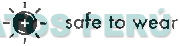 La denominación SAFE TO WEAR, escrita en letras características, y el diseño de una figura circular que se asemeja a un sol con el diseño de una cruz y dos líneas curvas en su interior; conforme al modelo adjunto