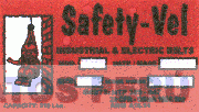 La denominación SAFETY-VEL INDUSTRIAL & ELECTRIC BELTS y logotipo (se reivindica colores), conforme al modelo