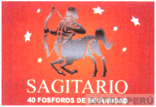El logotipo conformado por una figura rectangular en diversas tonalidades de color rojo; dentro de la cual se aprecia la figura estilizada de un centauro en color negro y diversas tonalidades de color plomo, la que se encuentra rodeada por estrellas de diversos tamaños en color blanco; debajo aparece la denominación SAGITARIO escrita en letras características de color blanco, seguida de la frase 40 FOSFOROS DE SEGURIDAD (sin reivindicar); conforme al modelo adjunto