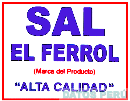 LA DENOMINACION SAL EL FERROL EN LETRAS CARACTERISTICAS DE COLOR AZUL; DEBAJO LA FRASE (MARCA DE PRODUCTO) EN COLOR ROJO Y ALTA CALIDAD EN COLOR AZUL (SIN REIVINDICAR); TODO DENTRO DE UN RECTANGULO DE COLOR ROJO; CONFORME AL MODELO ADJUNTO,