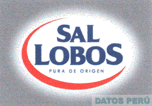 La etiqueta de fondo color plomo, que contiene dentro de una figura ovalada de color blanco la denominación SAL LOBOS escrita en letras características en color azul, debajo aparece la frase PURA DE ORIGEN en color azul, al lado izquierdo aparece un semi círculo de color rojo; conforme al modelo adjunto