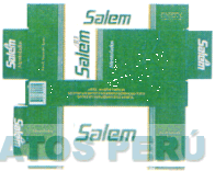 UNA CAJA EXPENDEDORA EN COLORES VERDE, BLANCO, DORADO Y PLOMO, CON LA INSCRIPCION DISTINTIVA SALEM Y DISEÑO CARACTERISTICO QUE SE ASEMEJA A LA FIGURA ESTILIZADA DE UNA VELA, DE ACUERDO CON LA DISTRIBUCION DE LINEAS Y COLORES QUE APARECEN EN EL MODELO ADJUNTO,