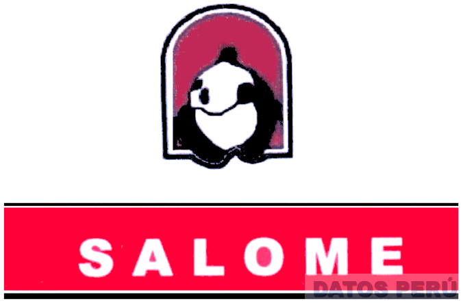 El logotipo conformado por la denominación SALOME escrita en letras características y la representación de un oso panda dentro de una ventana, todo en la combinación de colores blanco, negro y rojo; conforme al modelo adjunto