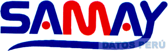 El logotipo conformado por la denominación SAMAY escrita en letras características, en los colores azul y rojo; conforme al modelo adjunto