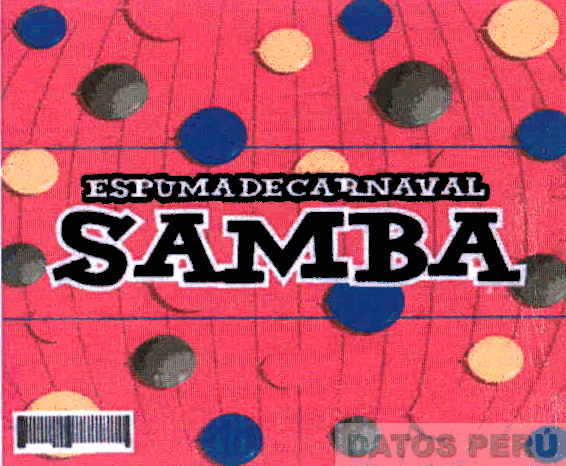 La etiqueta conteniendo la denominación SAMBA escrita en forma característica con letras negras bordeadas de blanco sobre fondo rojo con una serie de círculos en los colores rojo, rojo oscuro, amarillo, verde, azul, blanco y negro; conforme al modelo adjunto
