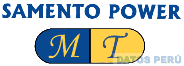 El logotipo conformado por la denominación SAMENTO POWER escrita en letras características, y la representación estilizada de una cápsula con las letras M T, en los colores azul, amarillo y negro; conforme al modelo adjunto