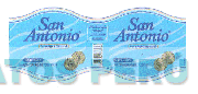 LA DENOMINACION SAN ANTONIO ESCRITA EN LETRAS CARACTERISTICAS, DENTRO DE UNA ETIQUETA DE BORDES ONDEADOS QUE PRESENTA EL DISEÑO DE DOS MEDALLAS, TODO EN LOS COLORES AZUL, CELESTE, EN DOS TONALIDADES, DORADO, NEGRO Y BLANCO; CONFORME AL FACSIMIL ADJUNTO