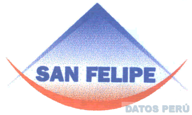 EL LOGOTIPO CONFORMADO POR LA DENOMINACION SAN FELIPE ESCRITA EN LETRAS CARACTERISTICAS DENTRO DE UNA FIGURA CONICA; TODO EN LOS COLORES ROJO, AZUL Y BLANCO; CONFORME AL MODELO ADJUNTO