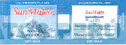 LA ETIQUETA ENVOLVENTE QUE CONTIENE EN LA PARTE CENTRAL LA DENOMINACIÓN SAN MATEO ESCRITA EN LETRAS CARACTERÍSTICAS CONTENIENDO EN LA PARTE CENTRAL LA FIGURA DE UNAS MONTAÑAS Y EN EL CENTRO LA DENOMINACIÓN BACKUS ESCRITA EN LETRAS CARACTERÍSTICAS, EN LA PARTE INFERIOR SIN GAS, TODO EN LA COMBINACIÓN DE COLORES CELESTE, AZUL, BLANCO Y ROJO, CONFORME AL MODELO