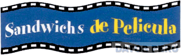 La denominación SANDWICHS DE PELÍCULA escrita en letras características de color blanco y amarillo, todo dentro de la representación estilizada de una cinta de película en color azul, negro y blanco; conforme al modelo adjunto