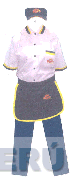 El diseño de un uniforme (sin reivindicar) conformado por una vicera en color azul con filo de color amarillo (sin reivindicar la figura de vicera ni los colores), la blusa en color blanco con bordes azules en el cuello, mangas y bolsillo, el pantalón en color azul, en la vicera, la blusa y el mandil (sin reivindicar las figuras de blusa, pantalón y mandil ni los colores) se aprecia la denominación SANDWICHS MIGUEL NO HAY COMO ÉL escrita en letras características y al lado derecho la figura de un sandwich y en la parte del bolsillo, arriba de la palabra SANDWICH, se aprecia una corona, todo en los colores azul, amarillo y anaranjado, conforme al modelo adjunto