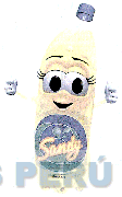 La representación humanizada de una botella con rostro femenino y dos extremidades superiores con guantes, en la parte inferior una figura circular conteniendo figuras geométricas, la representación de tres gotas y la denominación SANDY escrita en letras características, y el logotipo de BACKUS escrita en letras características, en los colores amarillo, negro, blanco, verde, azul y rojo; conforme al modelo adjunto