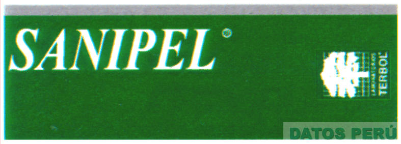 EL LOGOTIPO CONFORMADO POR LA DENOMINACION SANIPEL ESCRITA EN LETRAS CARACTERISTICAS Y LA FIGURA DE UN ARBOL EN FONDO BLANCO, UBICADO EN FORMA HORIZONTAL Y DEBAJO LA FRASE LABORATORIOS TERBOL, ESCRITA EN FORMA VERTICAL, EN COLORES BLANCO, VERDE OSCURO (343-C PANTONE) Y PLATEADO (877-C PANTONE); CONFORME AL MODELO ADJUNTO,