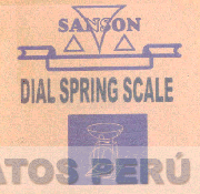 Etiqueta cuadrangular en cuya parte superior se aprecia el término SANSON escrita en letras características y logotipo, debajo la denominación DIAL SPRING SCALE escrita en letras características, en la parte inferior se aprecia la figura de una balanza dentro de un cuadrado, sin reivindicar colores; conforme al modelo adjunto