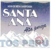 LA DENOMINACION SANTA ANA SOBRE UNA CADENA DE MONTAÑAS NEVADAS DE LOS ANDES, EN LOS COLORES FONDO AZUL DIFUMINADO, CELESTE Y BLANCO, CONFORME AL MODELO ADJUNTO,