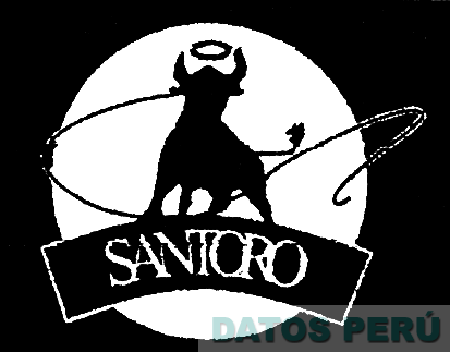El logotipo conformado por la denominación SANTORO escrita en letras características, en la parte superior se aprecia la sombra de un toro dentro de un círculo, en medio de sus cuernos una aureola y cruzándolo una línea en forma de látigo, en color blanco y negro; conforme al modelo adjunto