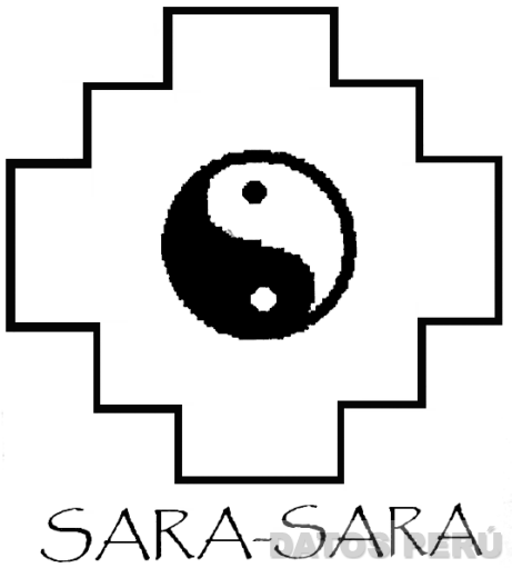 LA FIGURA DE UNA CRUZ DE FORMA ESCALONADA QUE EN LA PARTE CENTRAL LLEVA UN CIRCULO EN DOS CAMPOS DE FORMA IRREGULAR UNO NEGRO CON UN PUNTO BLANCO Y EL OTRO BLANCO CON UN PUNTO NEGRO; DEBAJO DE LA CRUZ APARECE LA DENOMINACION SARA - SARA, CONFORME AL MODELO