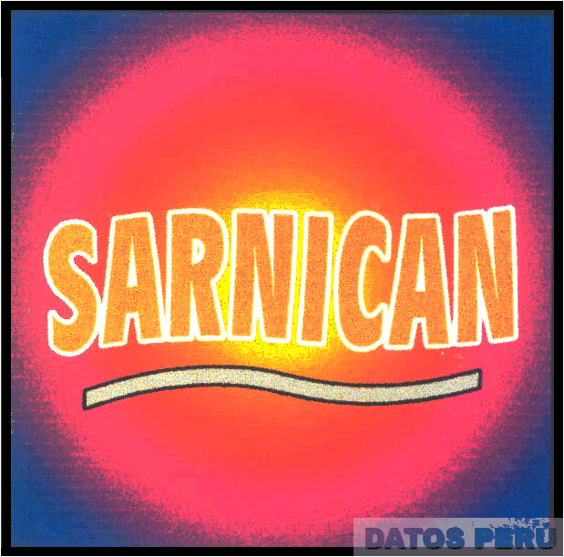 LA DENOMINACION SARNICAN ESCRITA EN LETRAS CARACTERISTICAS DENTRO DE UN CIRCULO, EN LA PARTE SUPERIOR UNA LINEA CURVA, TODO EN LOS COLORES AZUL, ROJO, AMARILLO, ANARANJADO, FUCSIA, MARRON CLARO, BLANCO, NEGRO, PLATEADO, DORADO; CONFORME AL MODELO ADJUNTO