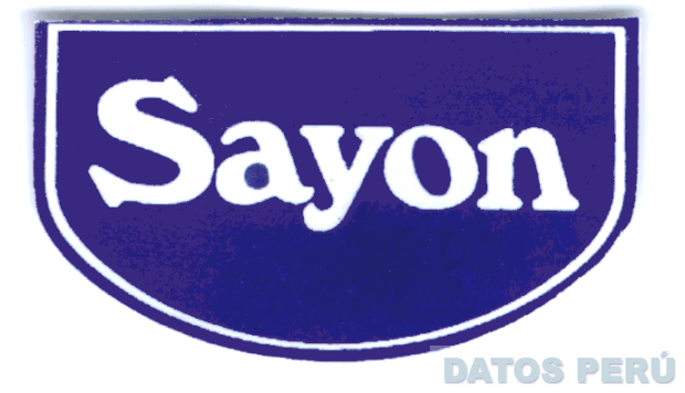 LA DENOMINACION SAYON EN LETRAS CARACTERISTICAS DE COLOR BLANCO, ESCRITAS DENTRO DE UNA FIGURA GEOMETRICA DE FONDO AZUL CON UN BORDE DE COLOR BLANCO, SEGUN MODELO ADJUNTO,