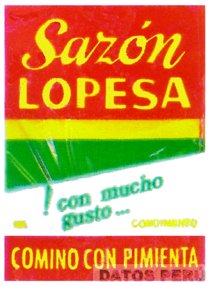 LA ETIQUETA QUE CONTIENE LA DENOMINACION SAZON LOPESA, EN COLOR AMARILLO SOBRE FONDO ROJO, EN LA PARTE INFERIOR SE APRECIA UNA FRANJA DE COLOR AMARILLO, UNA FRANJA TRIANGULAR DE COLOR VERDE Y OTRA FRANJA RECTANGULAR DE COLOR ROJO, CONFORME AL MODELO ADJUNTO,