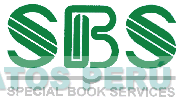 Las letras estilizadas SBS subrayadas por una línea irregular, y debajo la denominación SPECIAL BOOK SERVICES escrita en letras características, en la combinación de colores verde y plomo; conforme al modelo adjunto