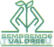 La denominación SEMBREMOS VALORES escrita en letras características, la representación de dos manos donde se aprecia una planta con dos hojitas, en la combinación de colores verde y blanco; conforme al modelo adjunto